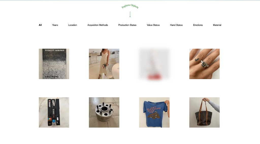 Users can upload objects, add metadata (location, emotions, acquisition, etc.), and discover connections through shared material culture